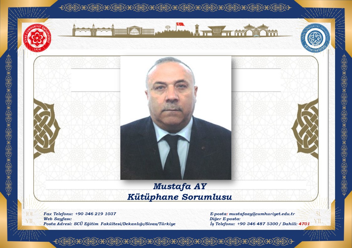 Dekanlık  Prof. Dr. Eyüp KEMERLİOĞLU Kütüphanesi    Mustafa AY 4701  mustafaay@cumhuriyet.edu.tr