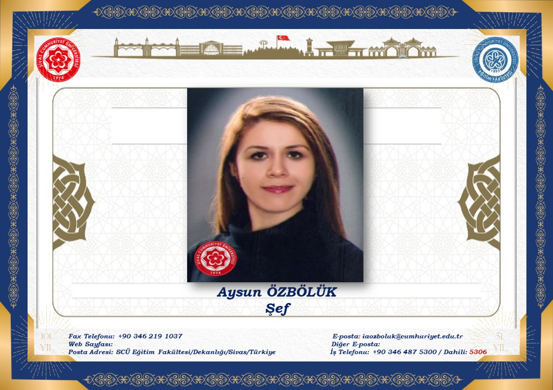 Dekanlık  Şef     Aysun ÖZBÖLÜK 5306  aozboluk@cumhuriyet.edu.tr
