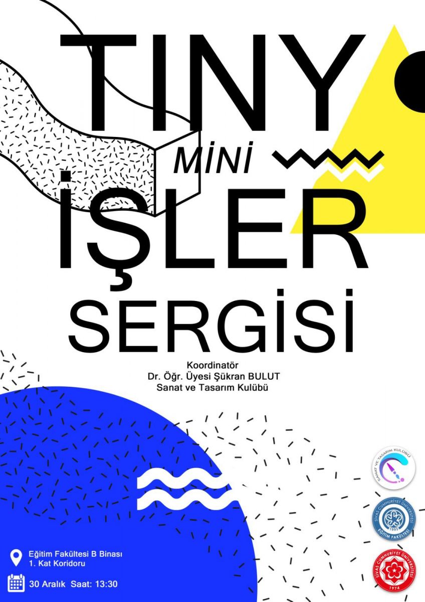 Dr. Öğretim Üyesi Şükran BULUT koordinatörlüğünde, Sanat ve Tasarım Kulubu tarafından düzenlenecek olan Tiny Mini İşler Sergisi 30 Aralık Perşembe günü 13.30'da Eğitim Fakültesi B Binası 1. Kat koridorunda düzenlenecektir.  Sergimize tüm öğrencilerimiz davetlidir.