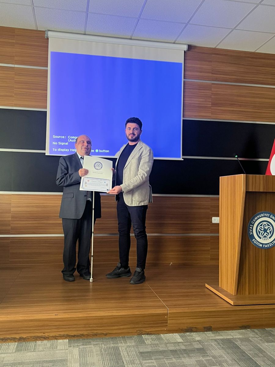 SCÜ Özel Eğitim Uygulama ve Araştırma Merkezi'nin davetiyle, Sivas Görme Engelliler Derneği Başkanı Selman DEVECİOĞLU öğrencilerimize konferans verdi.
